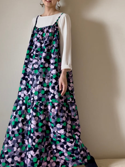 [Made to order] Batik cami dress (dot pattern/green pink)