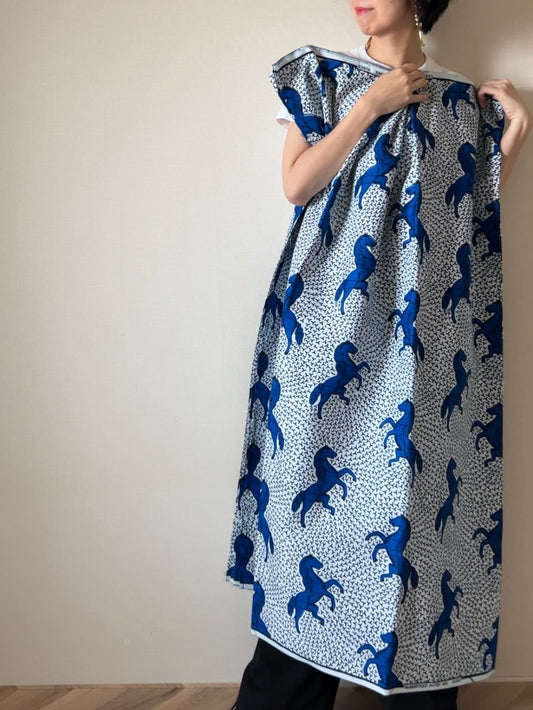 [Made to order] Volume sleeve dress (blue circle pattern)