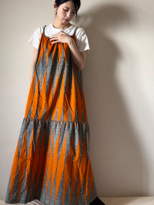 [Made to order] Batik cami dress (presidential pencil pattern/orange)