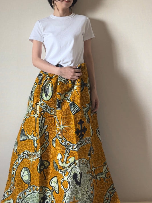 [Made to order] Voluminous long skirt (sun sword pattern)