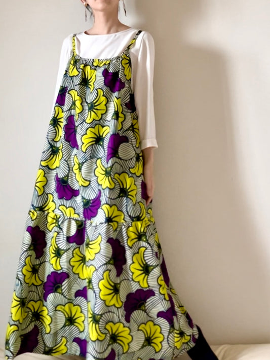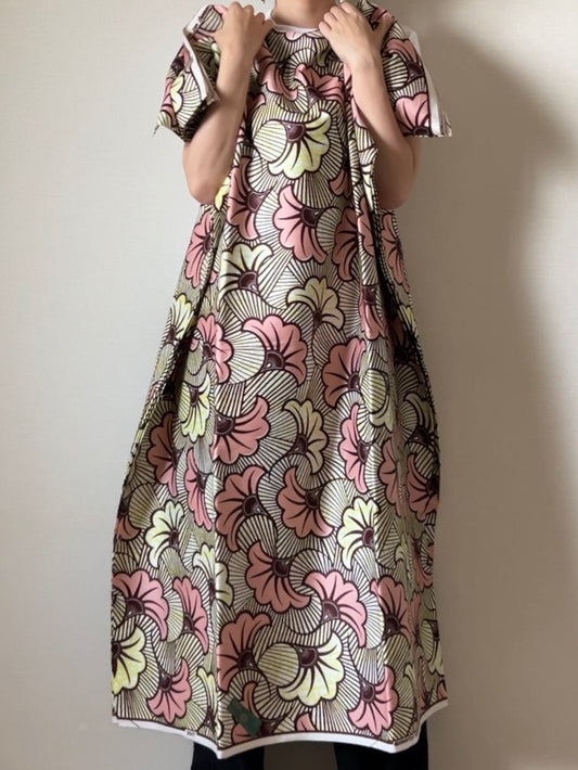 [Made to order] Voluminous sleeve dress (President's pencil pattern/yellow)