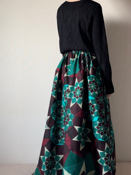 [Made to order] Voluminous long skirt (kaleidoscope pattern)