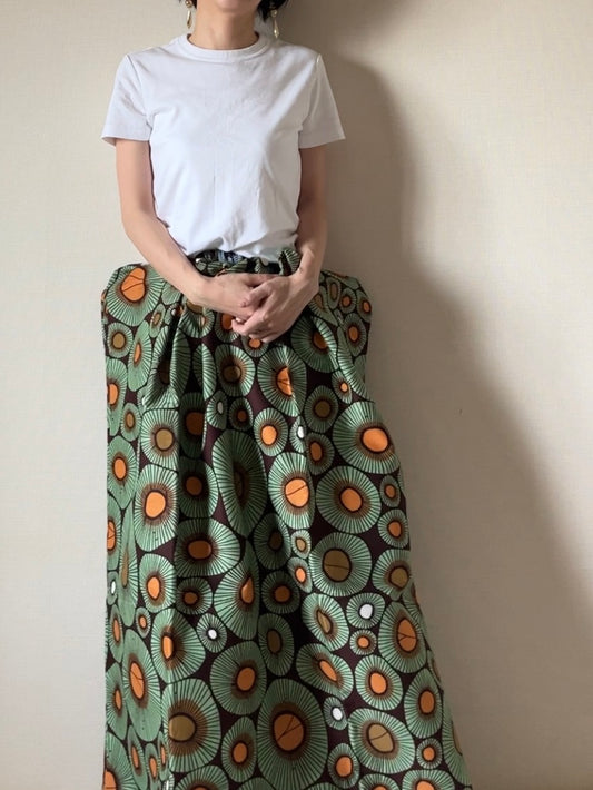 [Made to order] Voluminous long skirt (deformed circle pattern/green)
