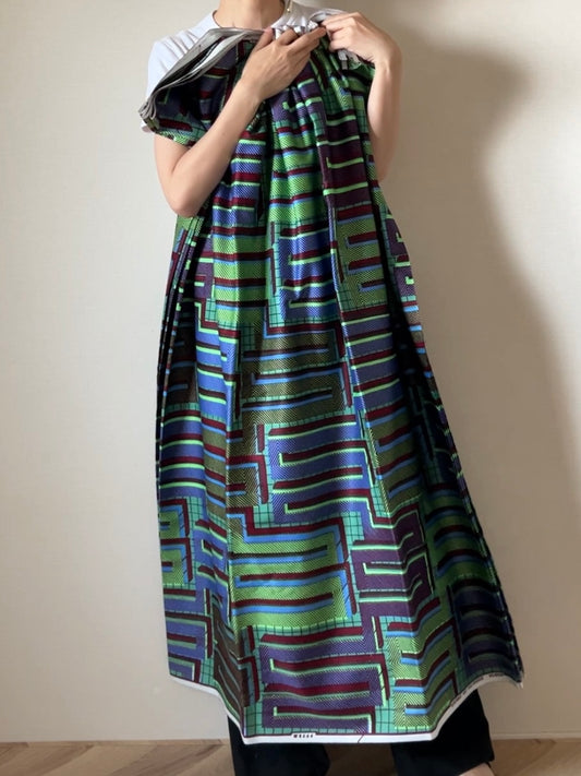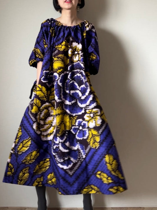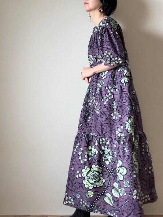 [Made to order] Volume sleeve dress (mariage pattern/purple yellow)