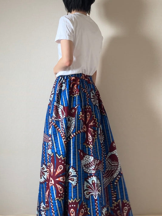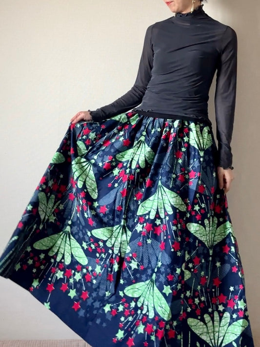 [Made to order] Voluminous long skirt (bird and flower pattern/foil included)