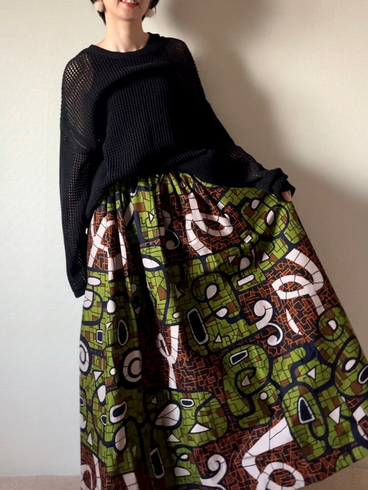 Sold outボリュームロングスカート(モザイク柄/カーキ)