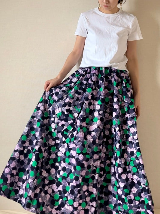 [Made to order] Voluminous long skirt (polka dot pattern)