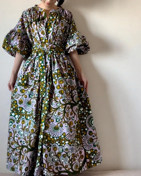 [Made to order] Volume sleeve dress (banana king pattern)