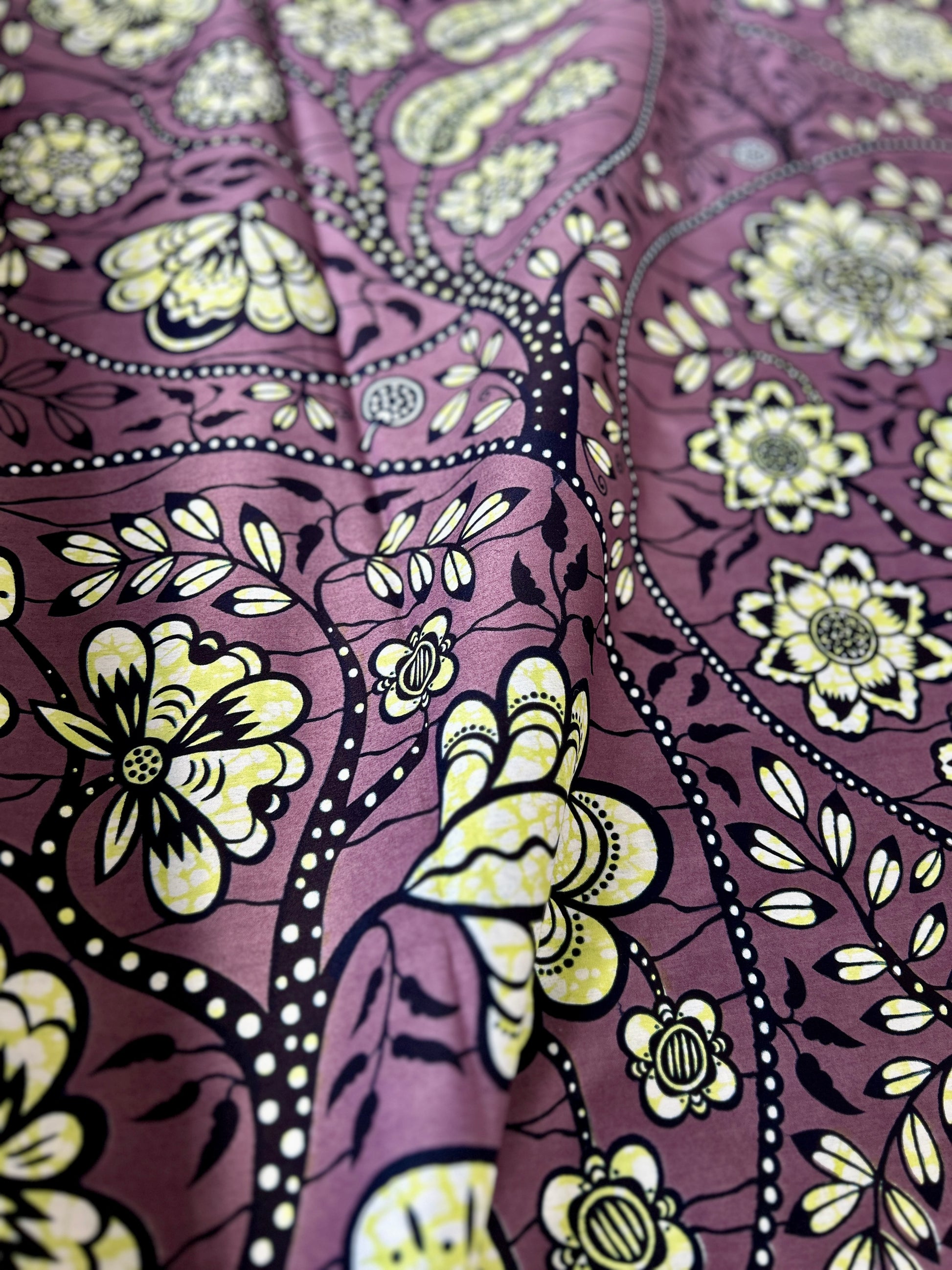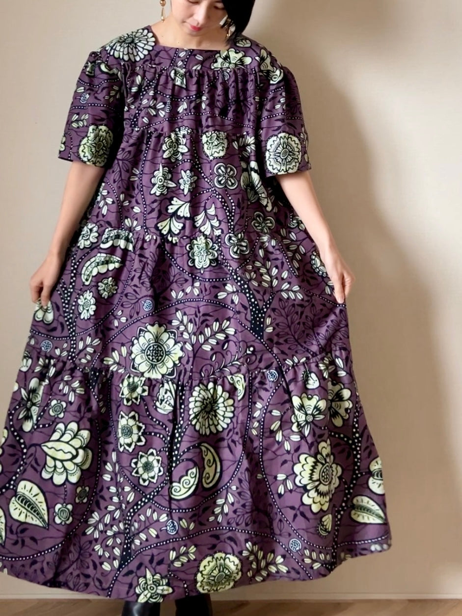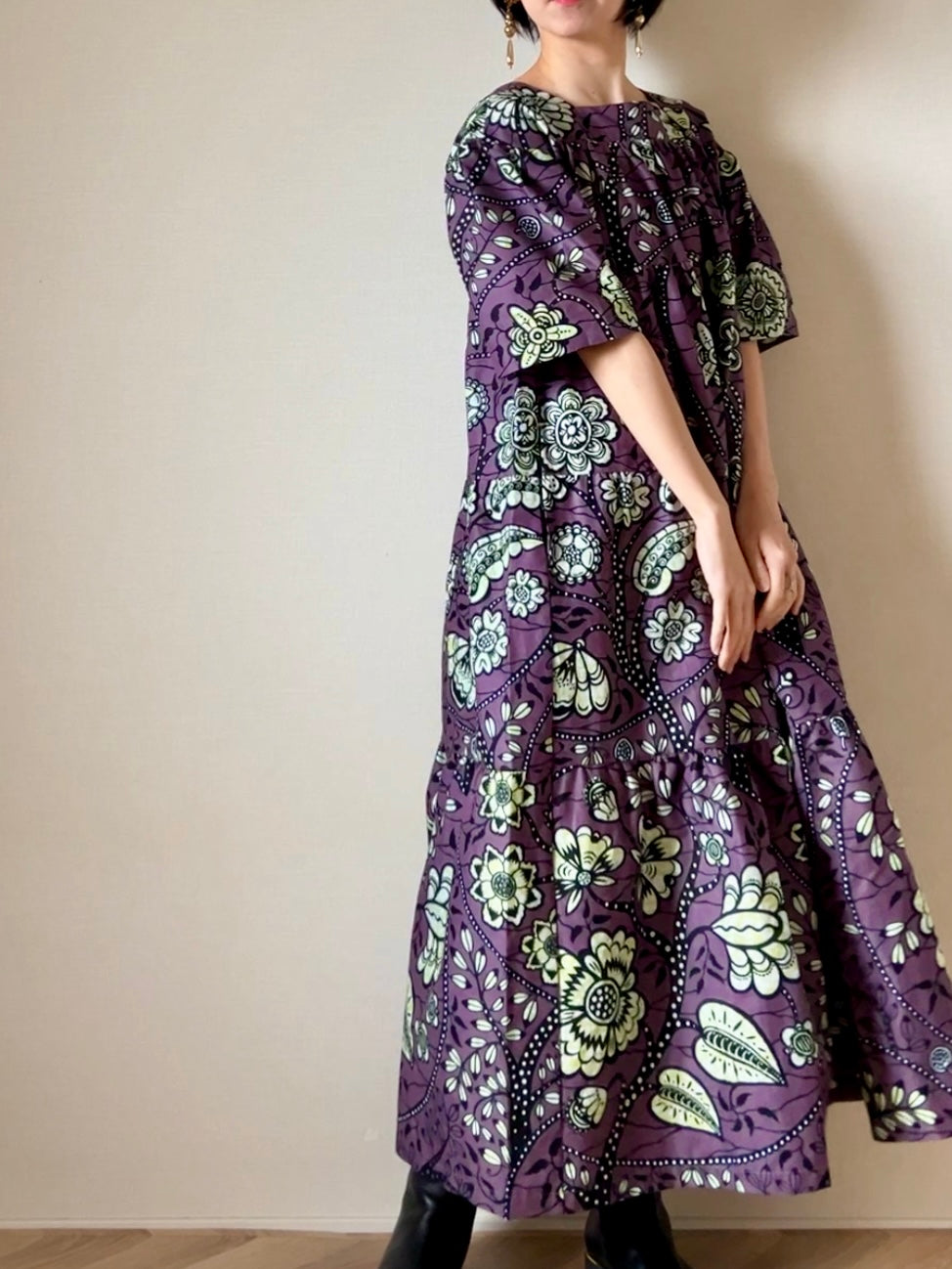 ・アフリカンバティックは1枚1枚染めや風合いが異なります。また総柄生地のため裁断などによる柄の出方なども写真とは異なりますのでご了承ください。
