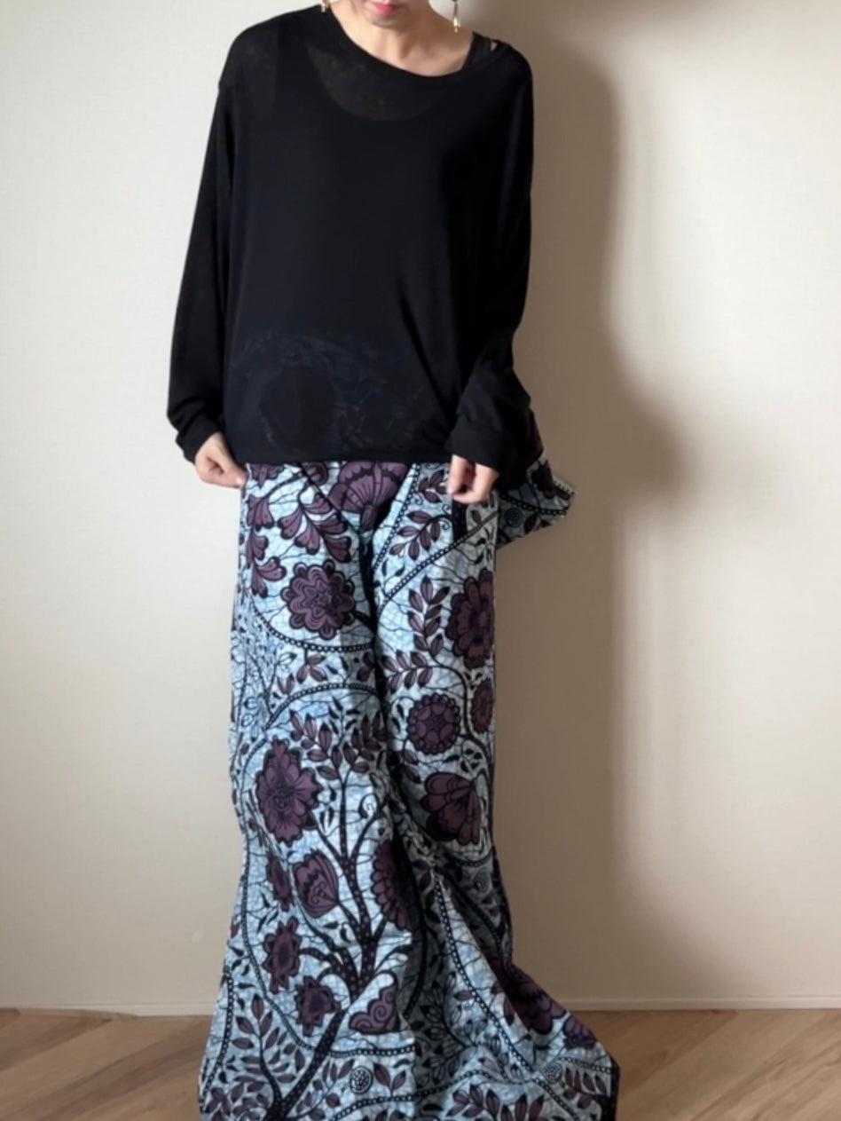 ・デジタルプリントではないため、染色の過程で出来たバブルやクラックがある場合があります。どれも同じプリントとはならない、ろうけつ染めの風合いとしてお楽しみ頂ければ幸いです。