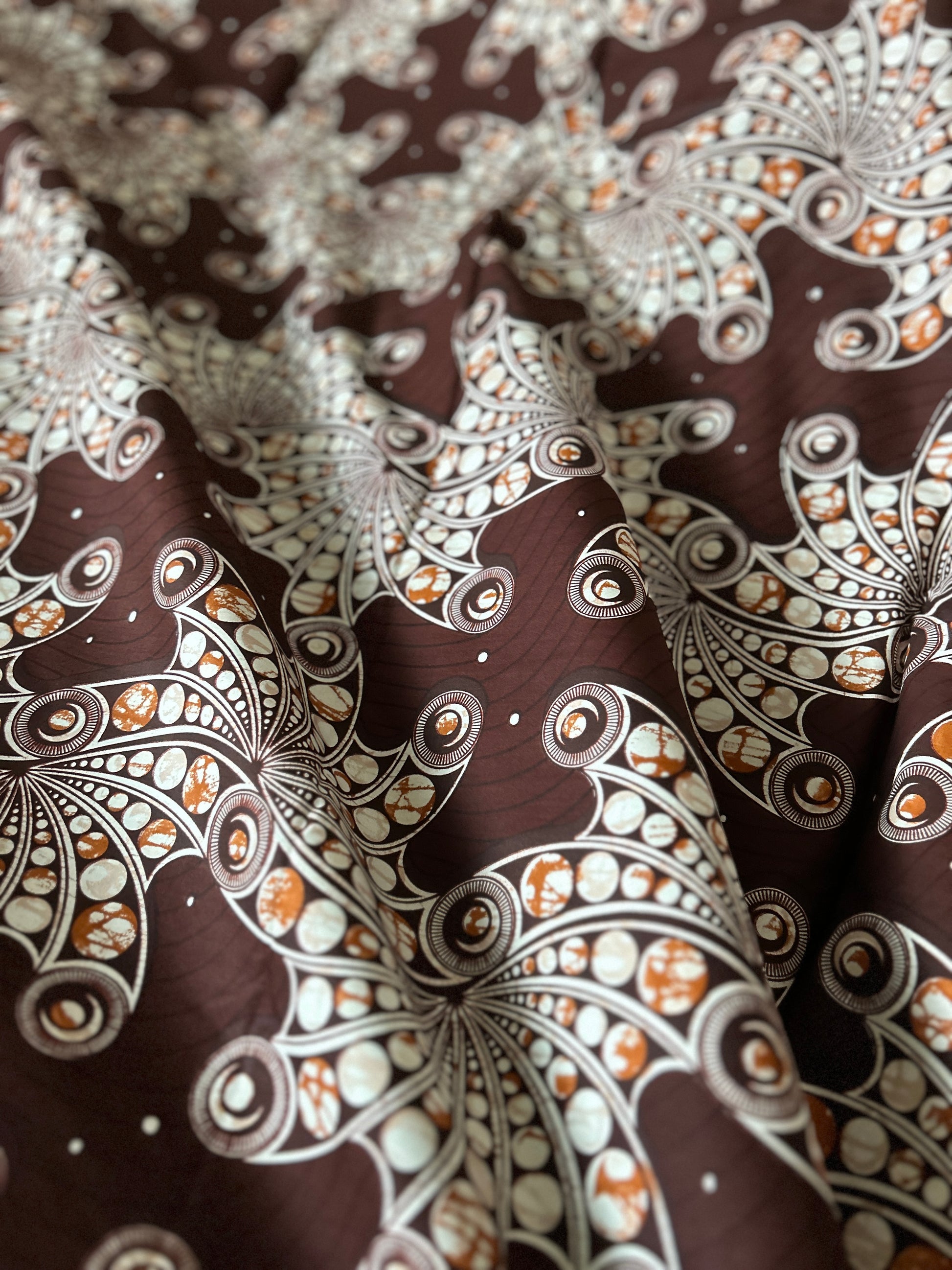 ・デジタルプリントではないため、染色の過程で出来たバブルやクラックがある場合があります。どれも同じプリントとはならない、ろうけつ染めの風合いとしてお楽しみ頂ければ幸いです。
