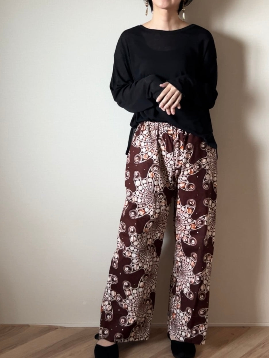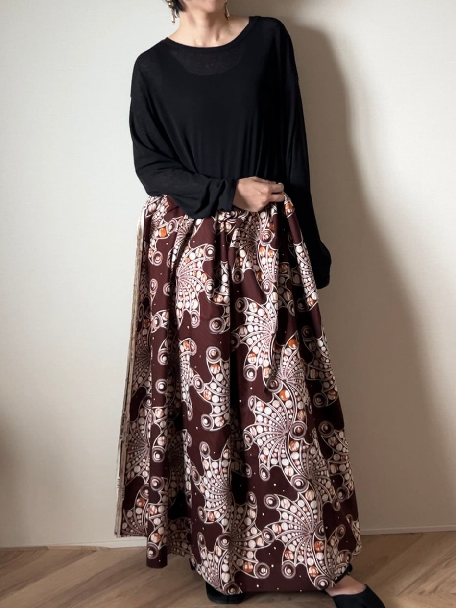 同柄のボトムスとのセットアップや、ワンピースとしての着こなしもおすすめです。