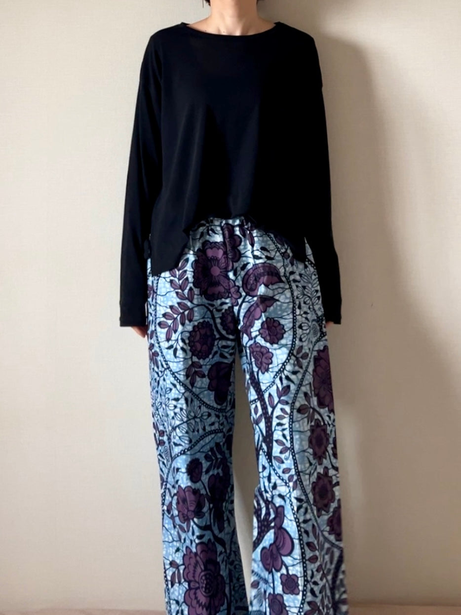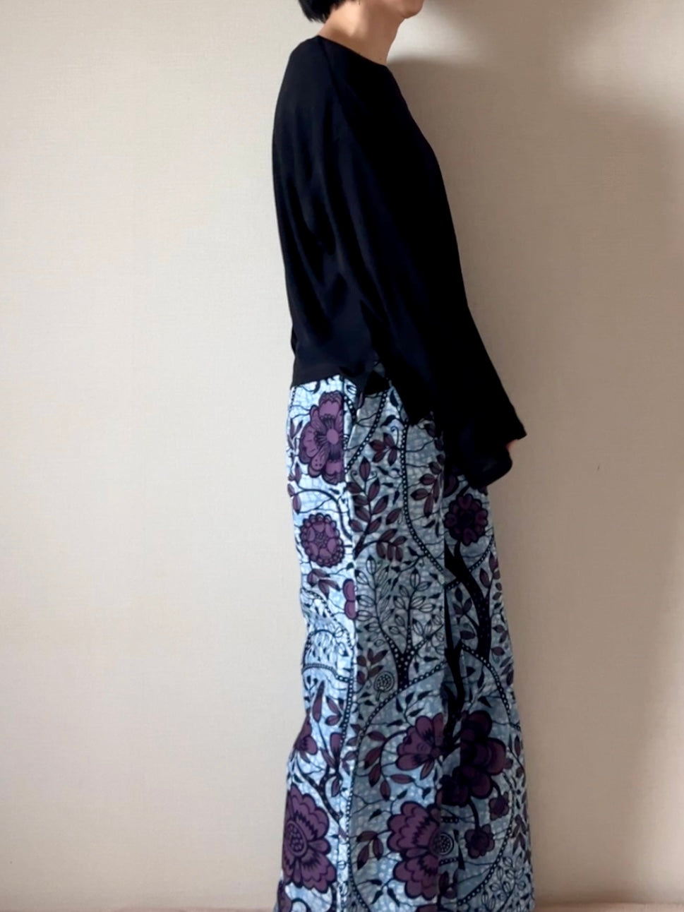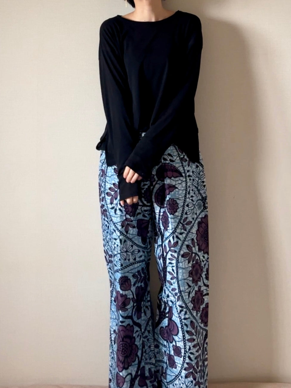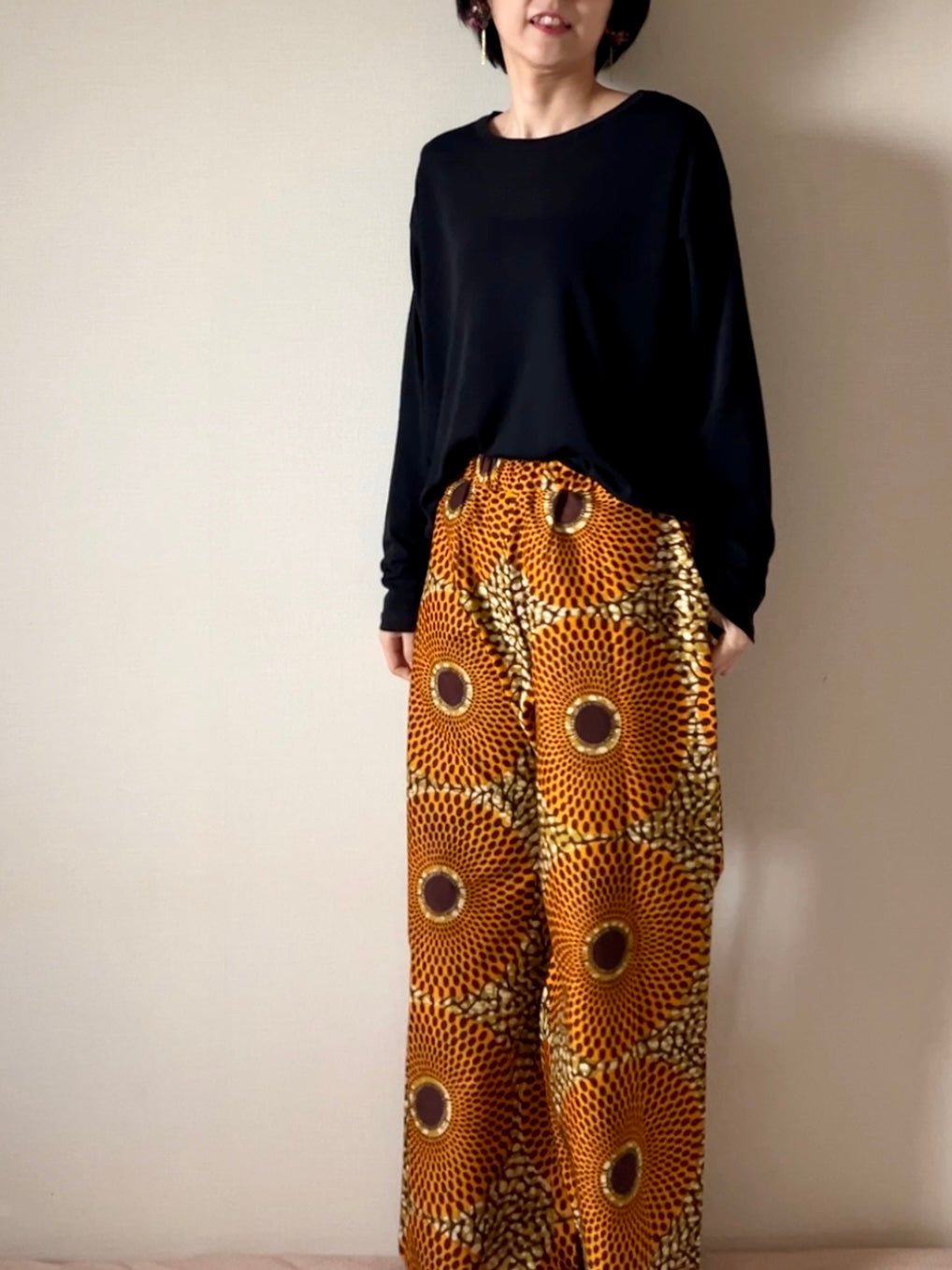 ・アフリカンバティックは1枚1枚染めや風合いが異なります。また総柄生地のため裁断などによる柄の出方なども写真とは異なりますのでご了承ください。