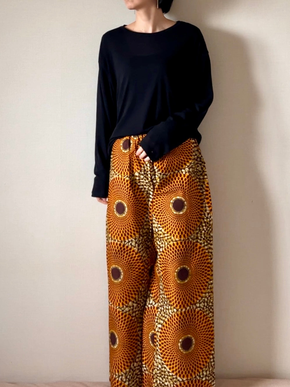 ・デジタルプリントではないため、染色の過程で出来たバブルなどがある場合があります。どれも同じ染めにはならない、アフリカンバティックの風合いとしてお楽しみ頂ければ幸いです。