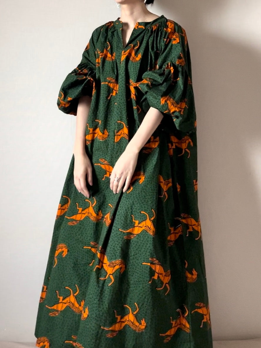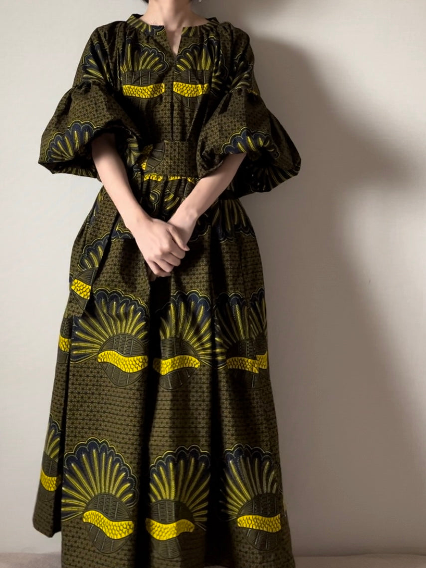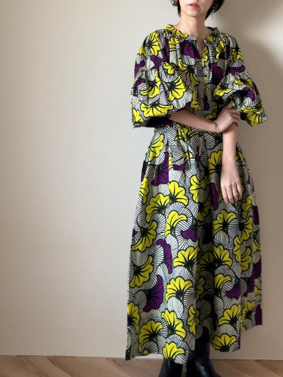 ◆贅沢に生地を使った、ふんわり袖とたっぷりギャザーが可愛い大人のワンピース