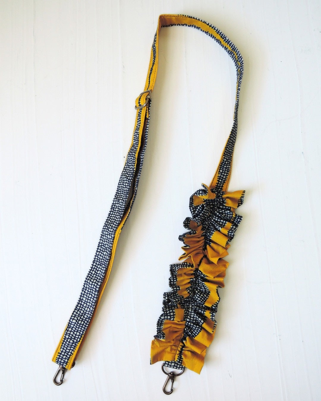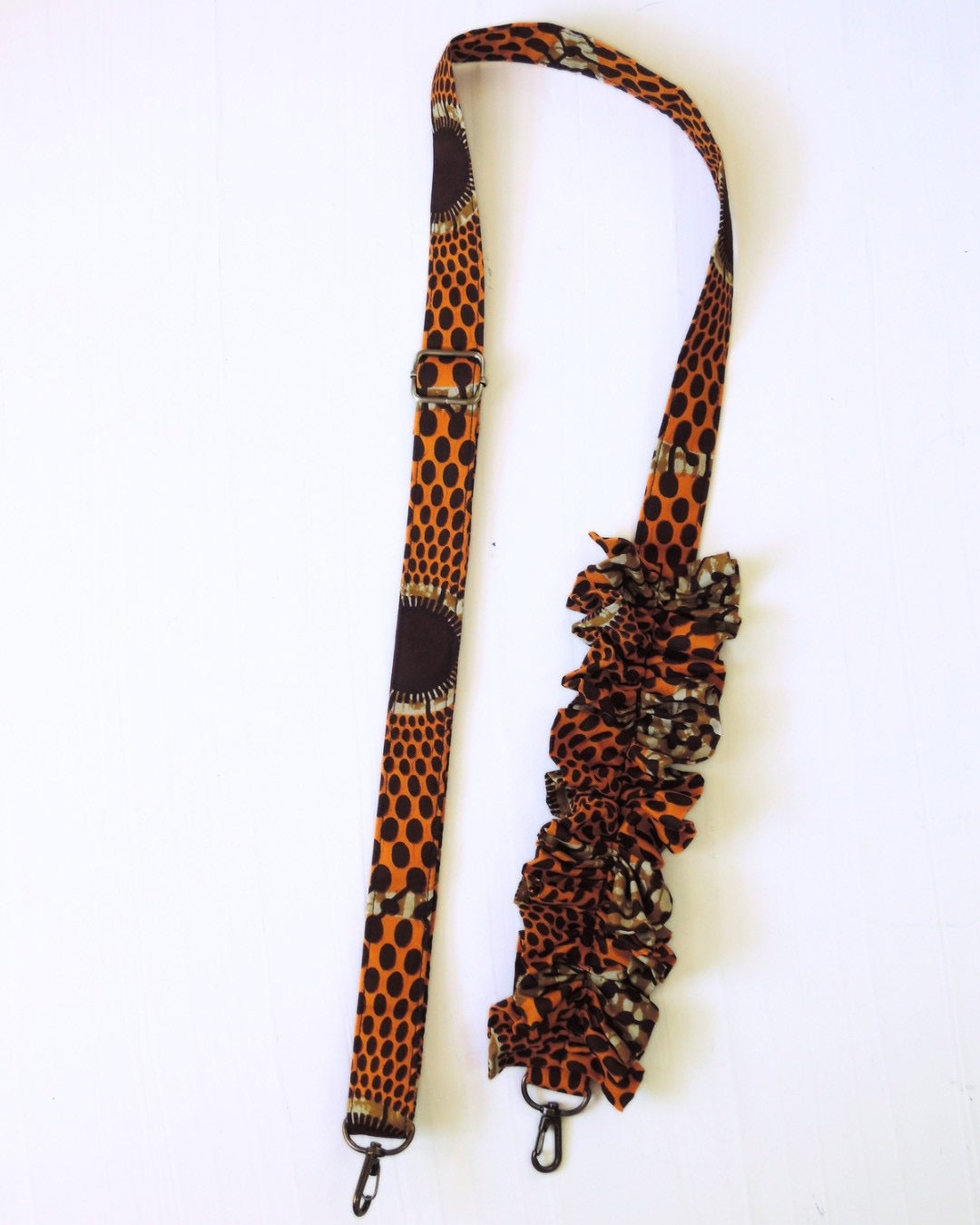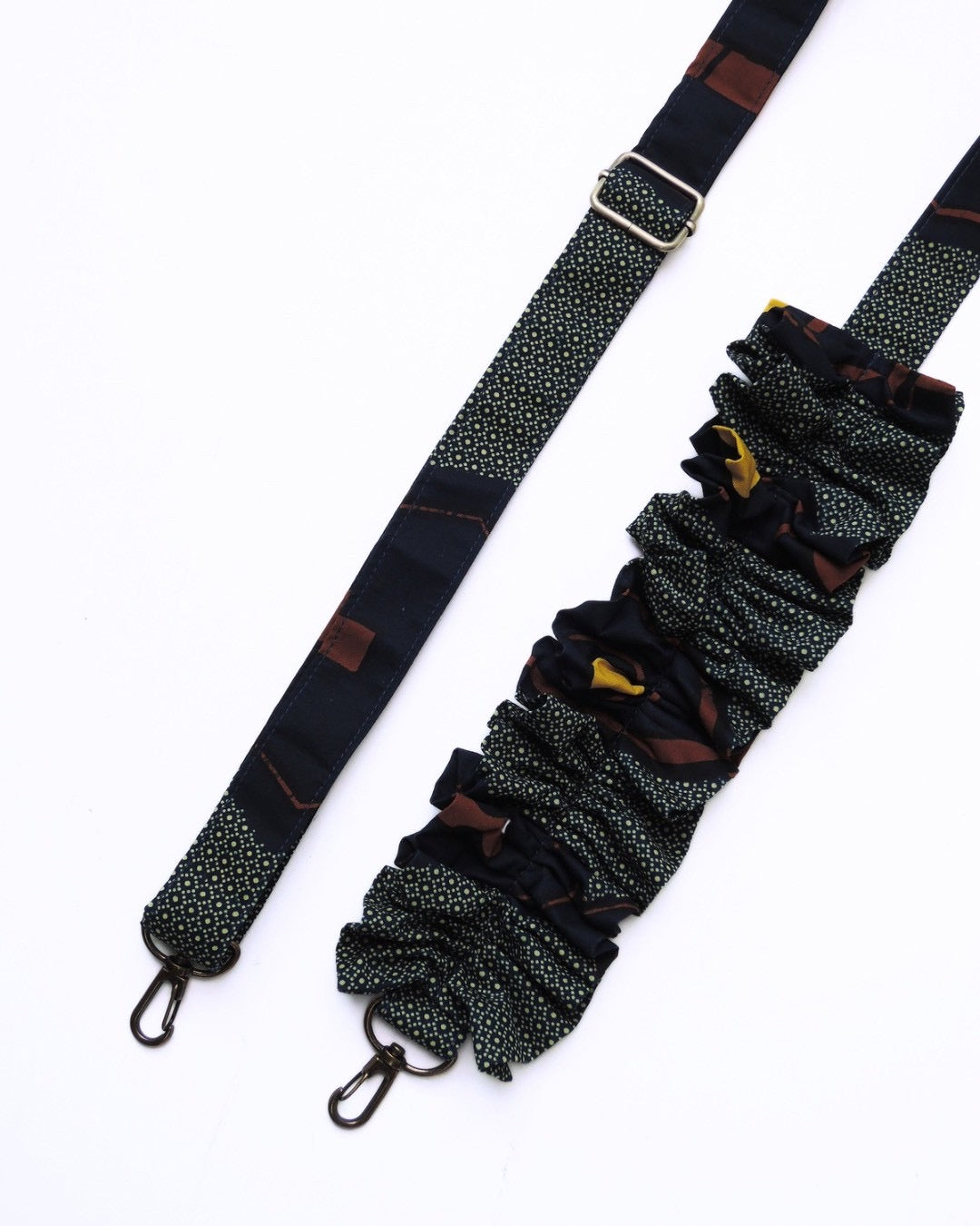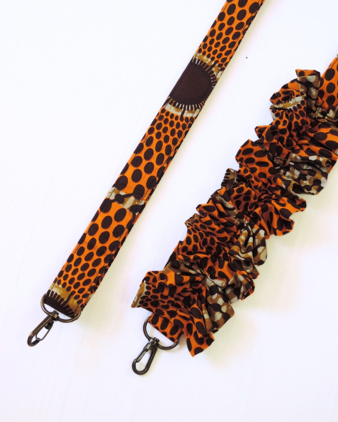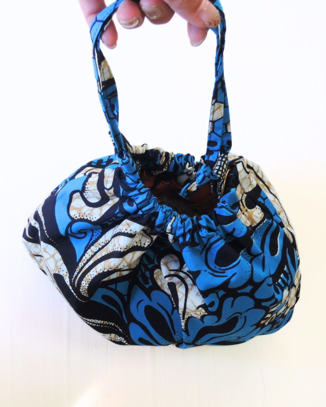 アフリカンバティック生地の存在感と、ギャザーを寄せた柔らかなフォルム。