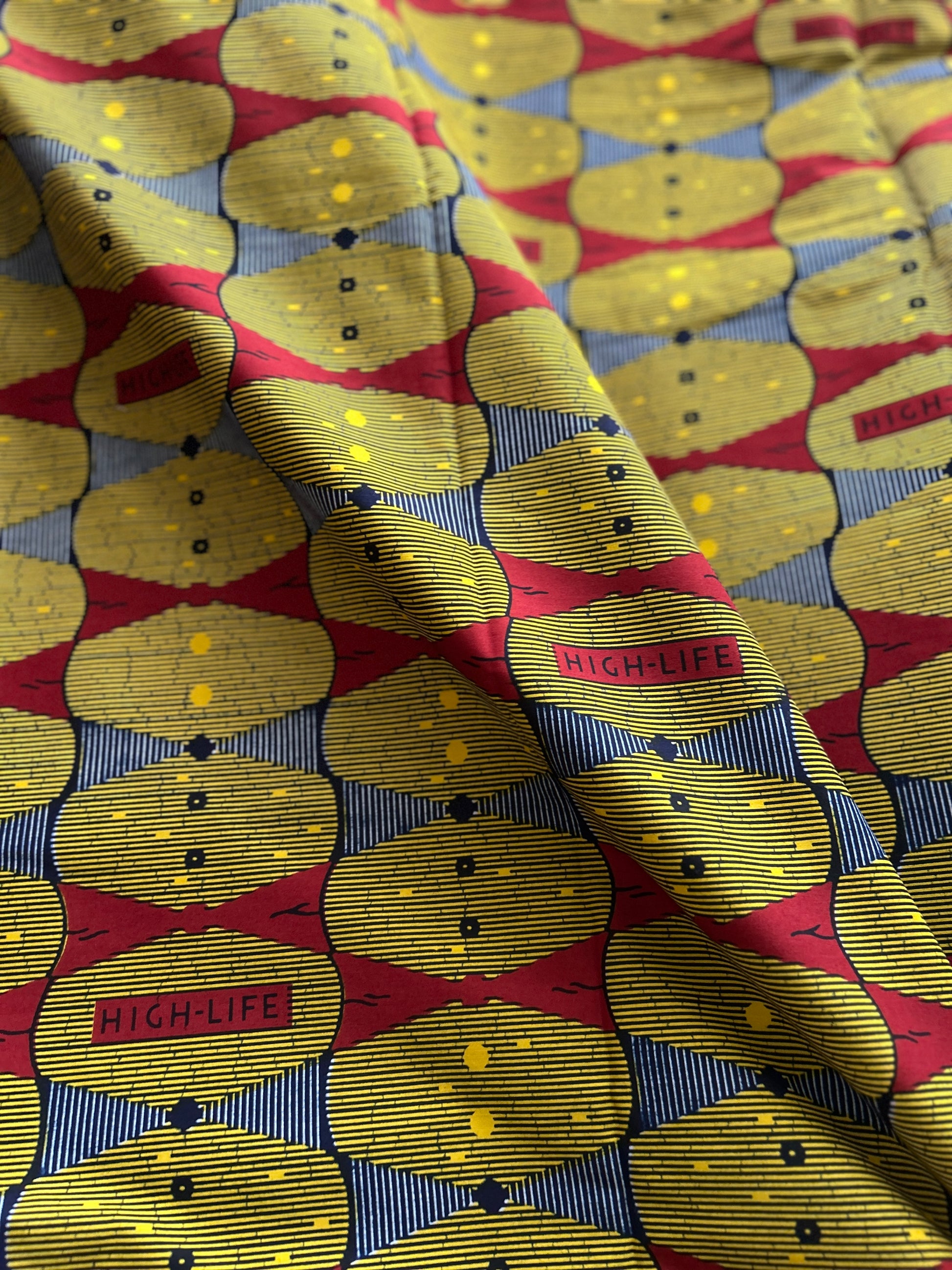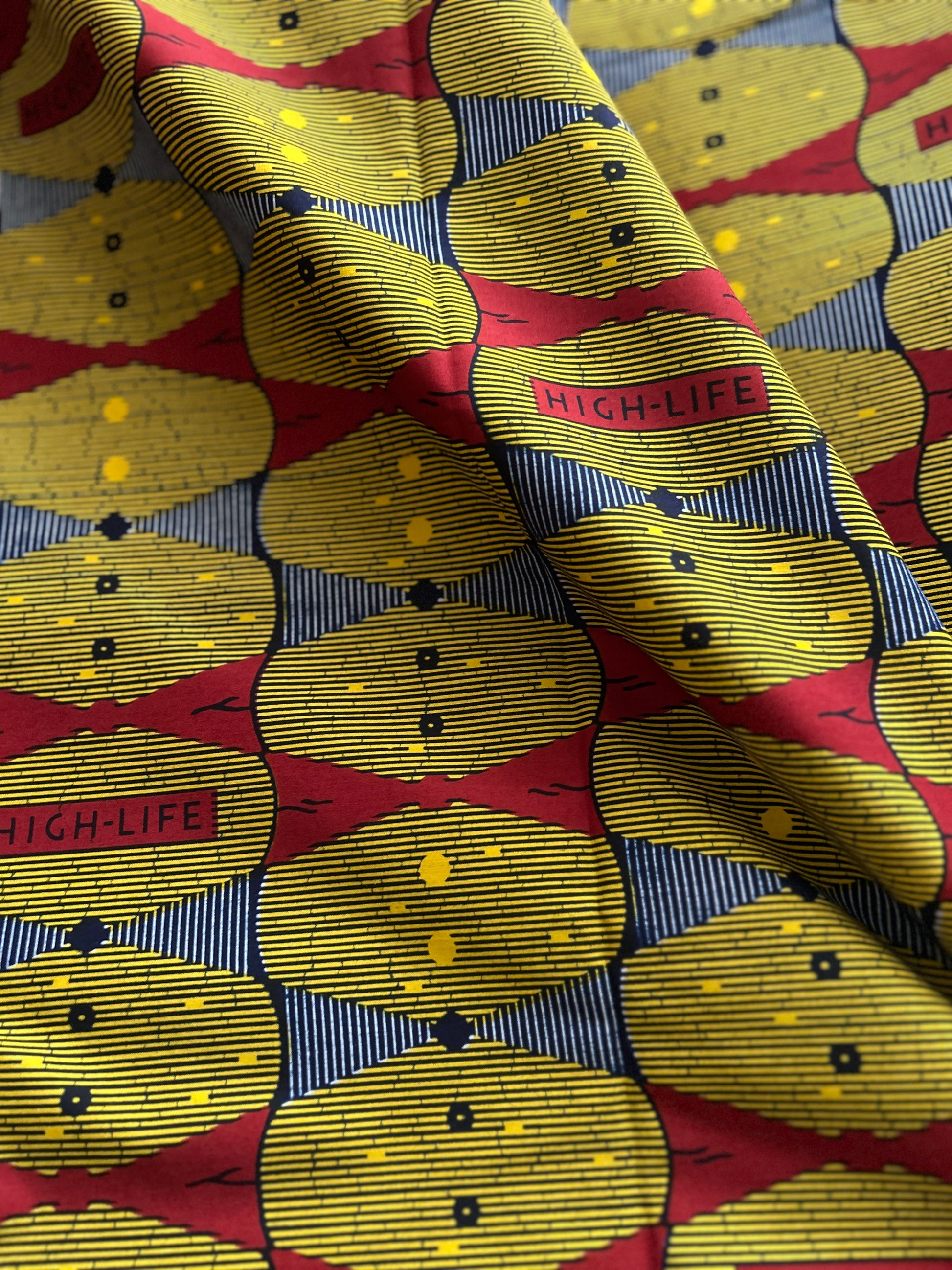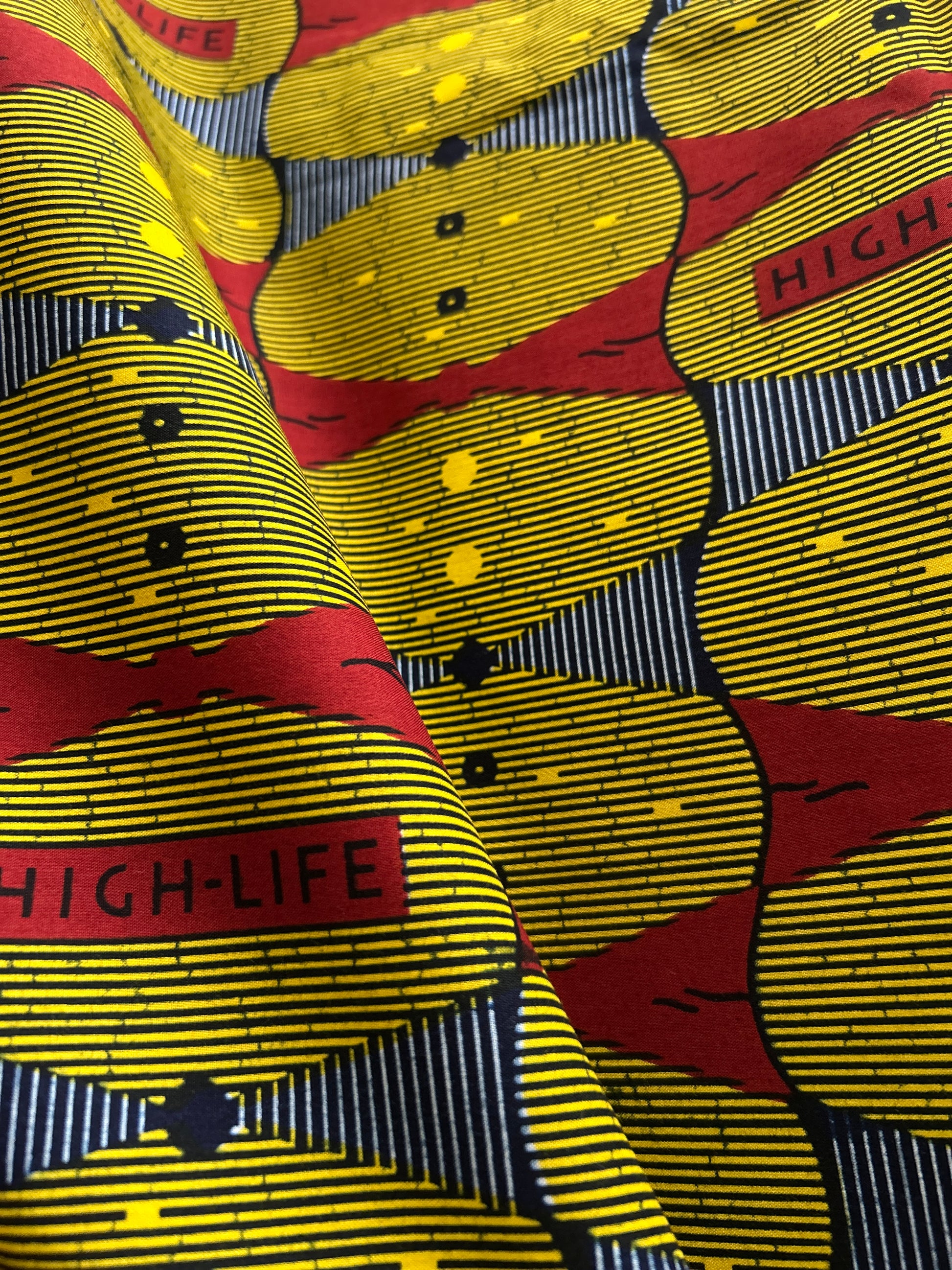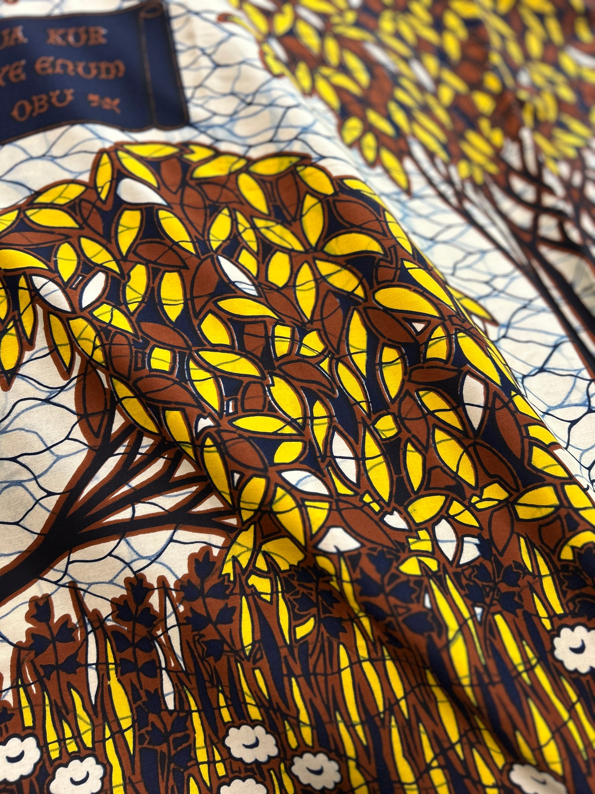 アフリカンバティック生地の存在感と、ギャザーを寄せた柔らかなフォルム。