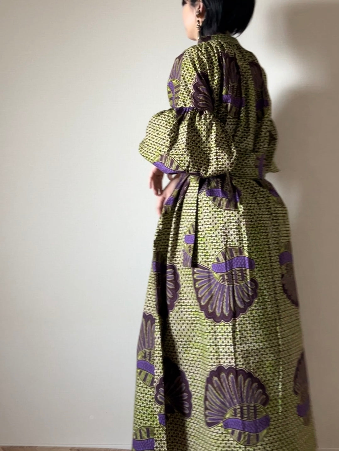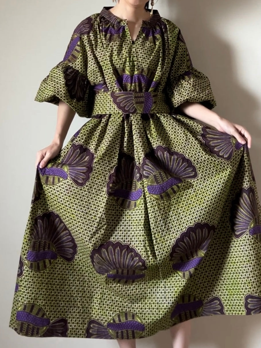 【受注生産】ボリューム袖ワンピース/バナナの王様(紫黄緑)